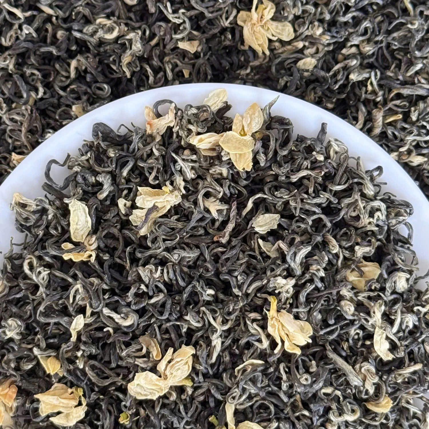 • Hương thơm: Trà tỏa ra hương nhài nhẹ nhàng, thoảng qua như gió sớm – không gắt, không nồng mà rất tinh tế. Đây là kết quả của quá trình ướp hương tỉ mỉ bằng hoa nhài tươi – một kỹ thuật đòi hỏi sự khéo léo và kiên nhẫn của người làm trà.
